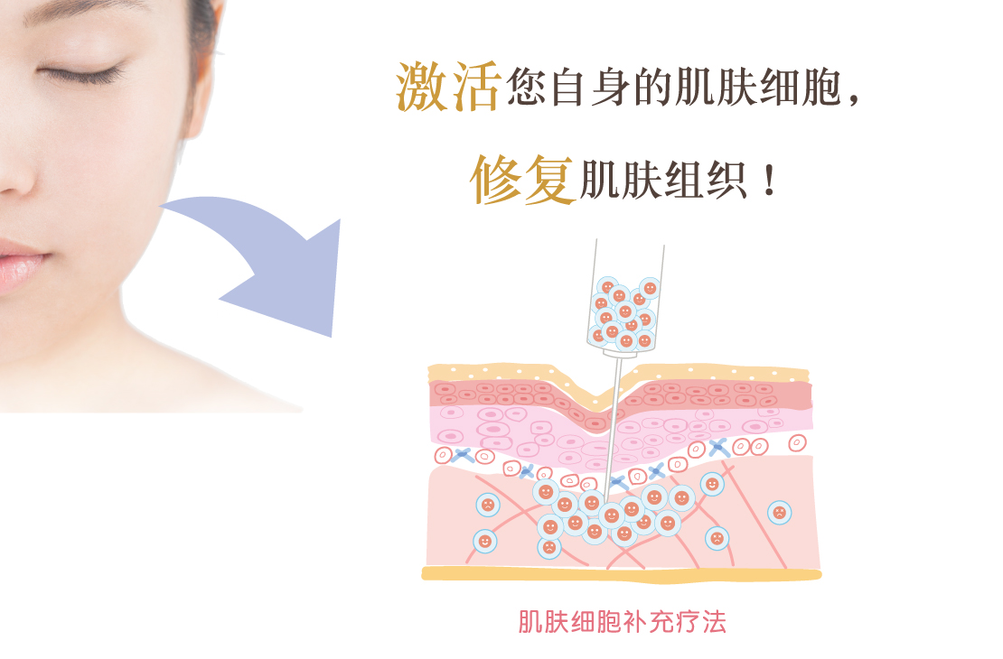 肌肤细胞补充疗法对您自身的肌肤细胞进行约10,000倍的培养/激活,再将其置回肌肤之中。